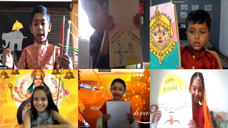 There was excitement galore as the students of class 1 geared up for their assembly on 14 October. The children came in wearing their traditional outfits, to celebrate the festival of Dasara; symbolized as the victory of good over evil. A few students dressed up as Lord Ram and Sita too! The students made masks, crowns, puppets and designed sketches and posters related to the festival. They depicted the story behind the celebration of this festival through beautiful drawings and craft work. Students narrated the significance of the festival and how the same festival is celebrated in different parts of India; Navaratri, Durga Puja, Mysore Dasara, Golu- an assembly of dolls, Ram Leela, and the burning of the Ravana’s effigy. The little artists enjoyed every bit of their performance!