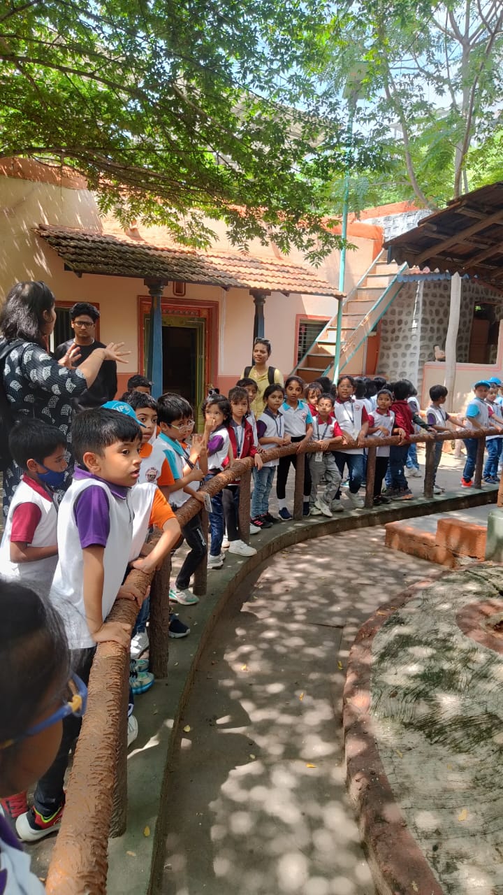 Students of Class 1 visited “Rangoli Gardens” as part of their field trip. It was a wonderful journey, where they witnessed a village life through a lot of realistic models of humans and animlas with different kinds of structures such as kutcha houses. They also had an in hand experience of making pottery and a horse cart ride. This filled each one with great excitement and enthusiasm. The walk through the place made it feel like a real visit to the village, all the way from the good old times where students attended classes sitting on floors to hospitals that had used only ayurvedic medicines to cure sicknesses, vegetable market, weaving houses and etc.,. This was a very informative visit as the students gathered a lot of information on how the village life is in contrast to present city life.