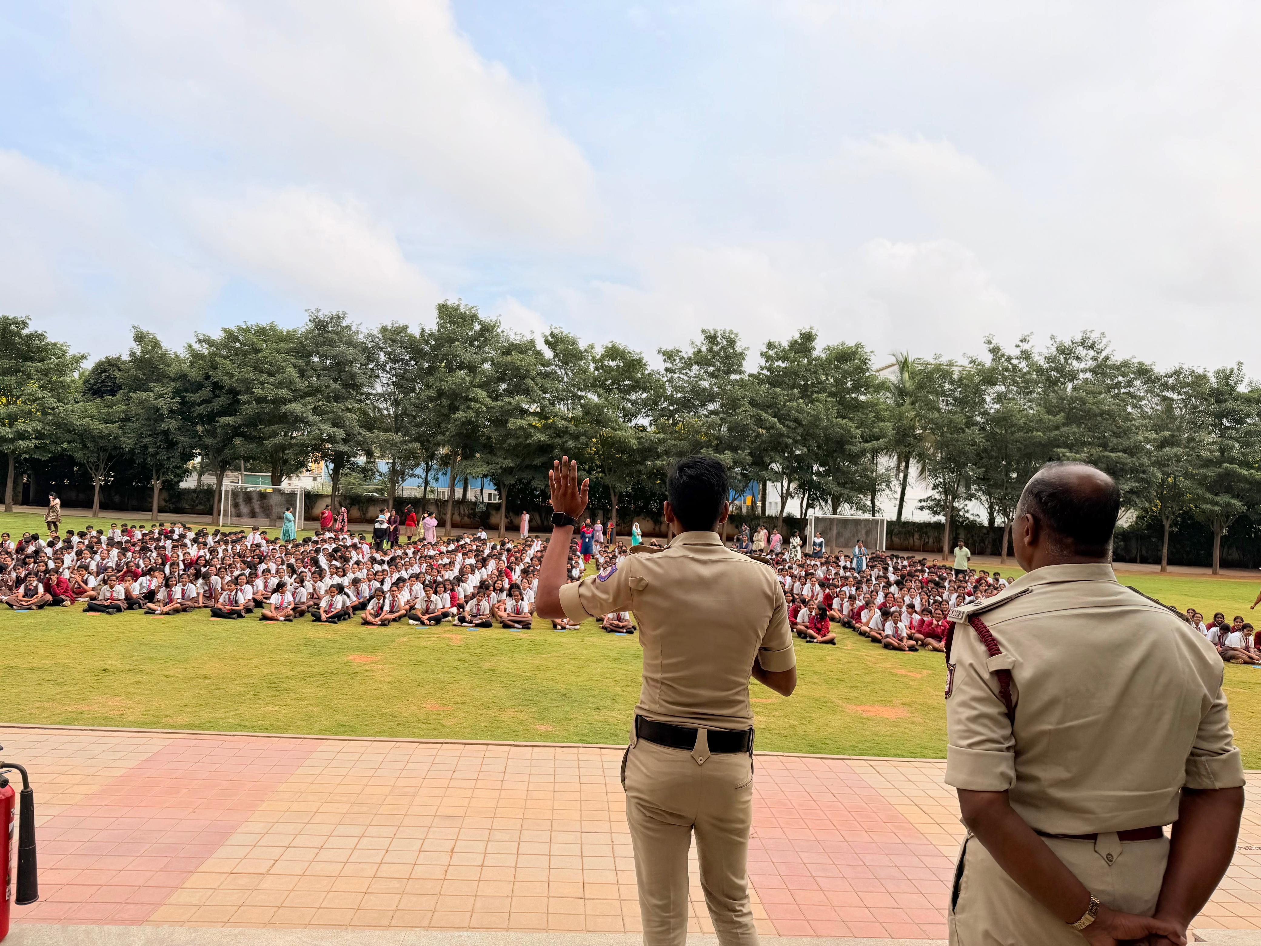 A Fire Safety Awareness Drill was organised for students of Classes 5 to 9 in collaboration with the Fire Safety Department, ITPL Whitefield. The session commenced with an informative talk explaining the fire triangle — heat, fuel, and oxygen — and how removing any one of these elements can stop a fire.