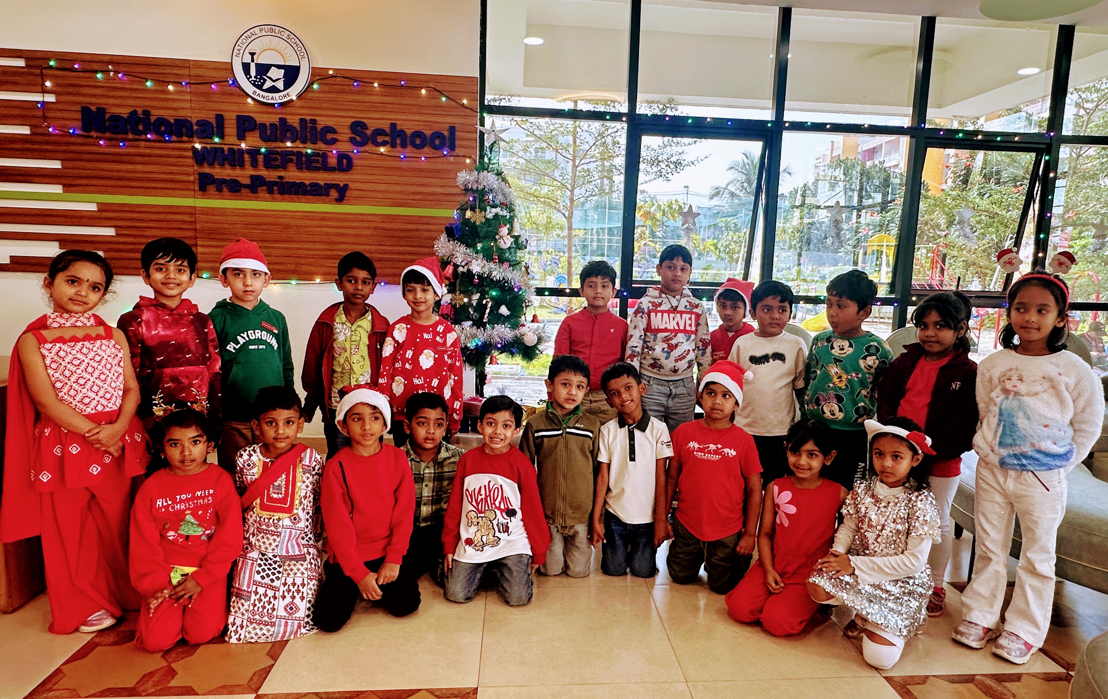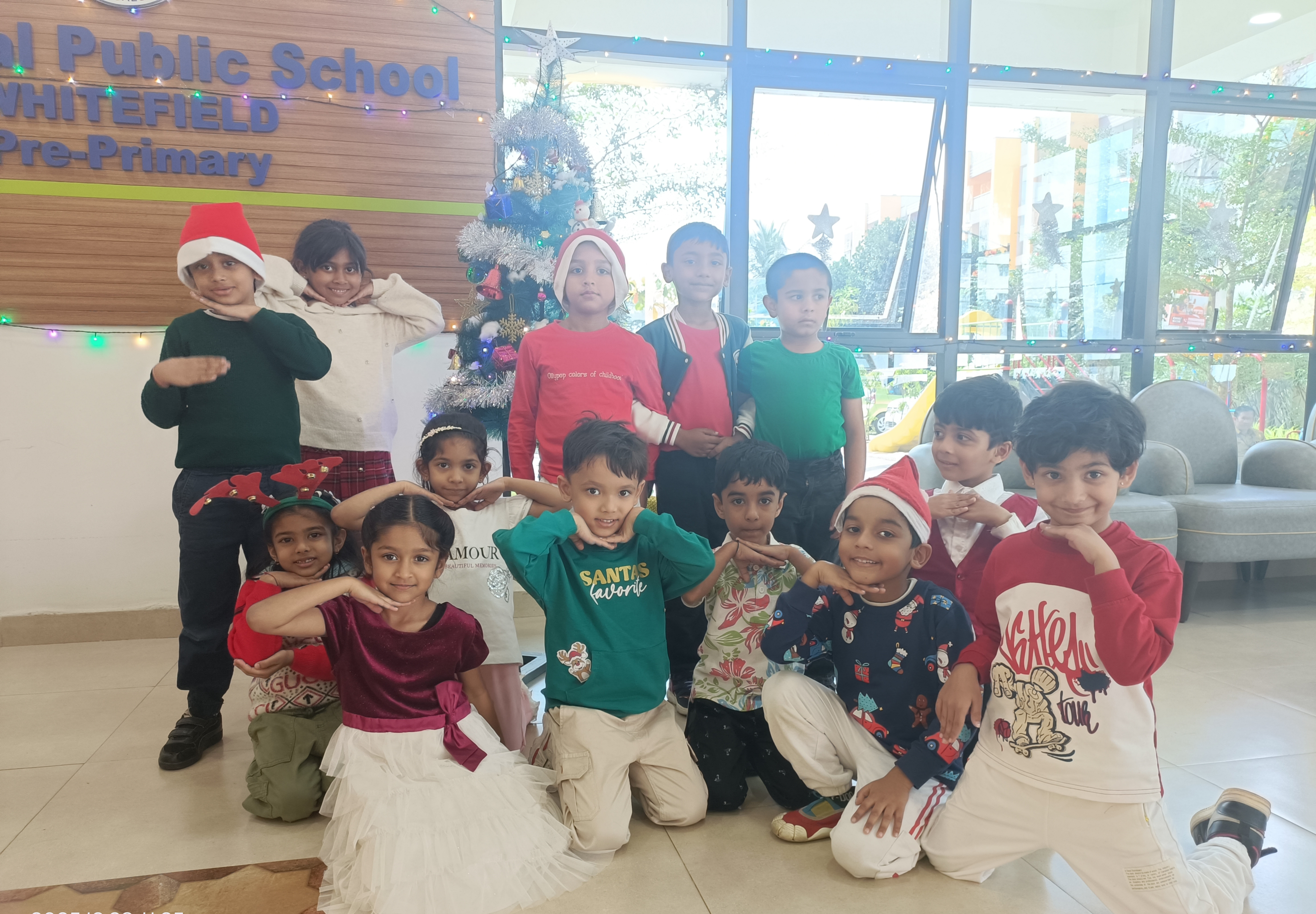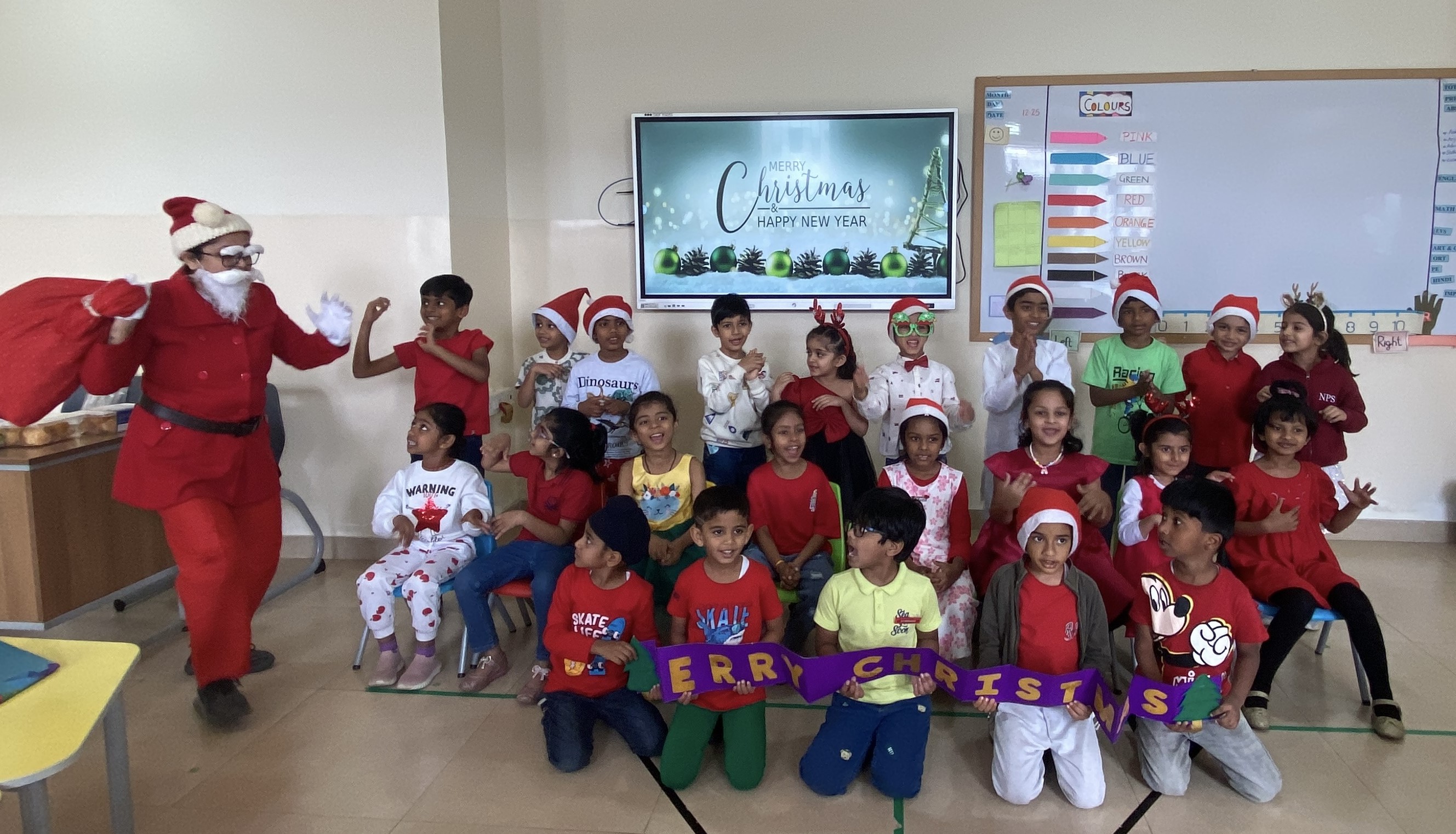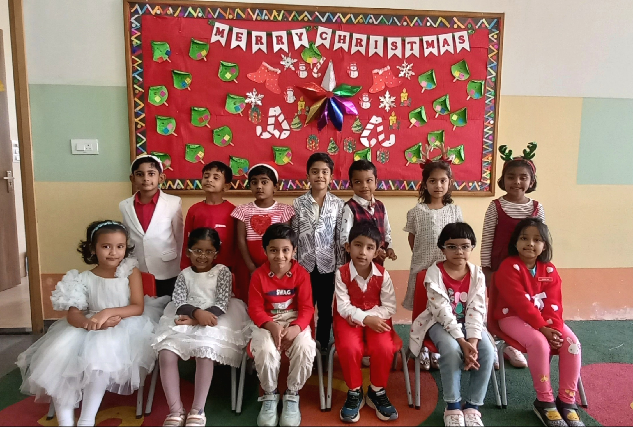 The Pre-Primary students and faculty celebrated Christmas in the most delightful way through a special programme by the teachers. Their joyful presentation captivated everyone, showcasing their enthusiasm and festive spirit. The teachers made it special by singing carols, and the entry of Santa Claus brought festive cheer filled with joy and togetherness. To make the occasion even more memorable, a fun-filled class party was arranged.