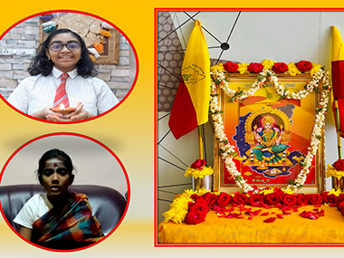 This year the double Rajyotsava celebrations, both online and offline, gave a special boost to students, office staff and teachers. On 9 November, the lobby area of NPS, Whitefield was aglow with the colours of red and yellow in the form of flowers, flags and other decorative items.