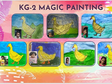 ‘Magic painting’ – The name itself brightened our children’s faces and added magic in their eyes. This activity involved drawing a duck with various patterns using only a black wax crayon.